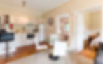 Large studio living area with a super king double bed, and one bedroom downstairs that has 3 single beds.
